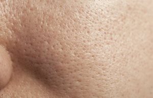 La piel grasa puede caracterizarse por la presencia de poros agrandados y visibles.