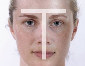- Zona T grasa (frente, mentón y nariz)